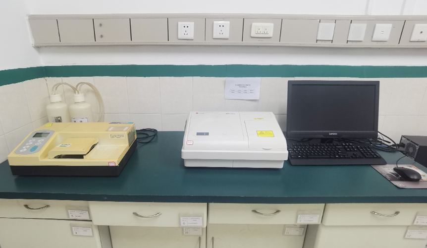 实验室面积650余平方米,设有血液生理生化检测、病原微生物检测、免疫检测、寄生虫检测、环境检测等5个检测专业组,拥有全自动生化仪、全自动血细胞分析仪、全自动凝血分析仪、电解质分析仪、尿液分析仪、酶标仪、奥林巴斯数码成像系统显微镜、数位式照度计、数字声级计、数位温湿度表、风速测量仪、便携式氨浓度检测仪等设备,可以满足实验动物血液、体液指标检测、抗原抗体、病原微生物、寄生虫检测以及实验动物环境监测等工作,与检测业务相适应的仪器设备及配属设备30余(台)套。